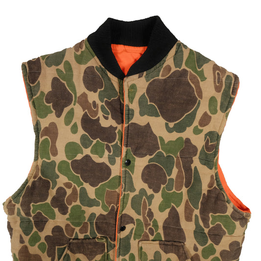 Vintage Duck Camo Reversible Vest Men's Large Orange Hunting Outdoor Frog Skin