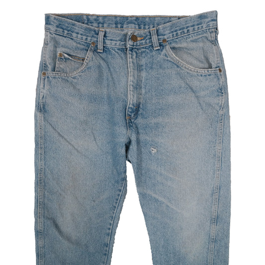 Vintage Wrangler Faded Blue Jeans 96501DK 32x28 Straight Leg Thrashed USA Made