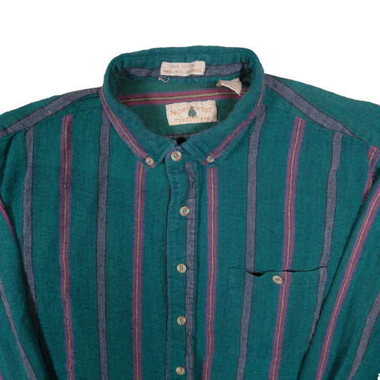 Vintage Northwest Territory Men's XL Flannel Green Stripes Pacific Northwest 100% Cotton