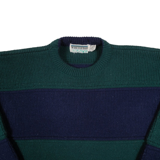 Vintage Whitefish Bay Men's Large Sweater Fisherman Mad in USA Green Blue Stripe