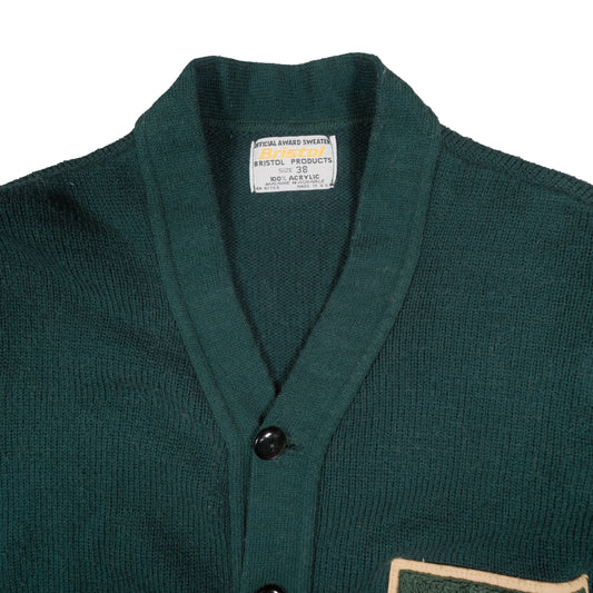 Vintage Bristol Official Awards Sweater Men's Medium Green Letterman Cardigan Preppy