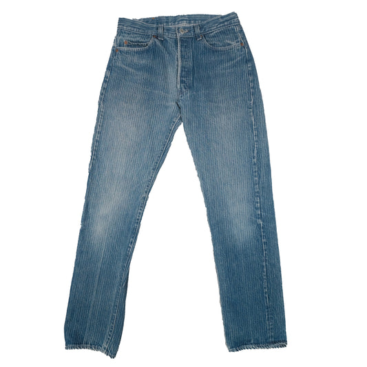Vintage 80's Levis Jeans 501 xx 30x33 Wabash Stripe Railroad Blue Denim Button Fly Rare