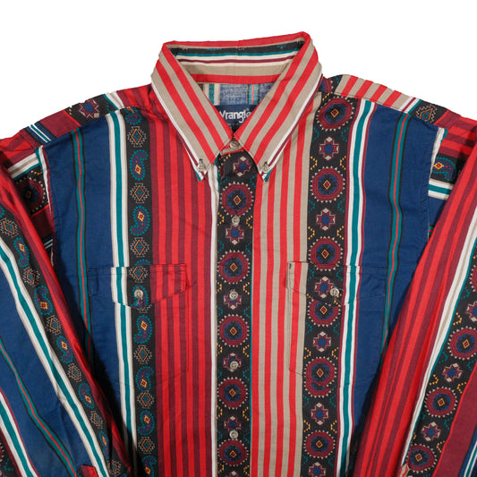 Vintage Wrangler Men's Large (16.5-35) Made in USA Southwestern Pattern Long Tails Button Down
