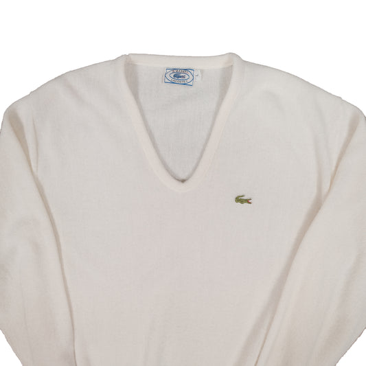 Vintage Izod Lacoste V-Neck White Sweater Men's Large Alligator Logo