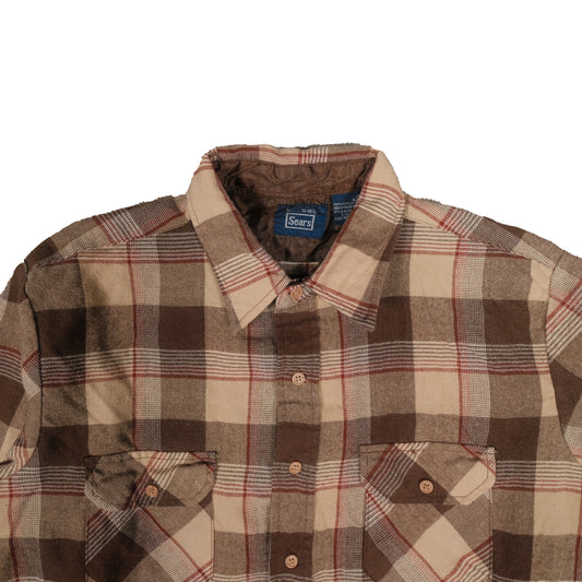 Vintage Sears Men's Large 100% Acrylic Made in Taiwan Flannel Button Up Long Sleeve