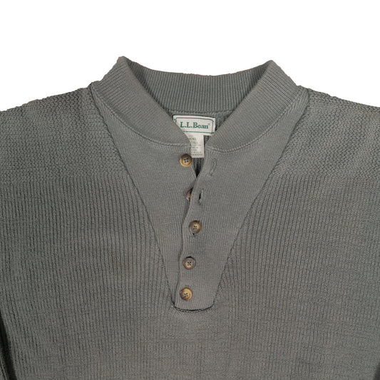 Vintage LL Bean Ribbed Cotton Henley Sweater Men's Large Tall Fisherman Knit USA Made Green