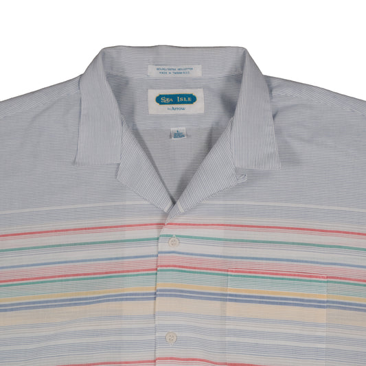 Vintage Arrow Sea Isle Men’s Large Camp Shirt Loop Collar Stripe Short Sleeve
