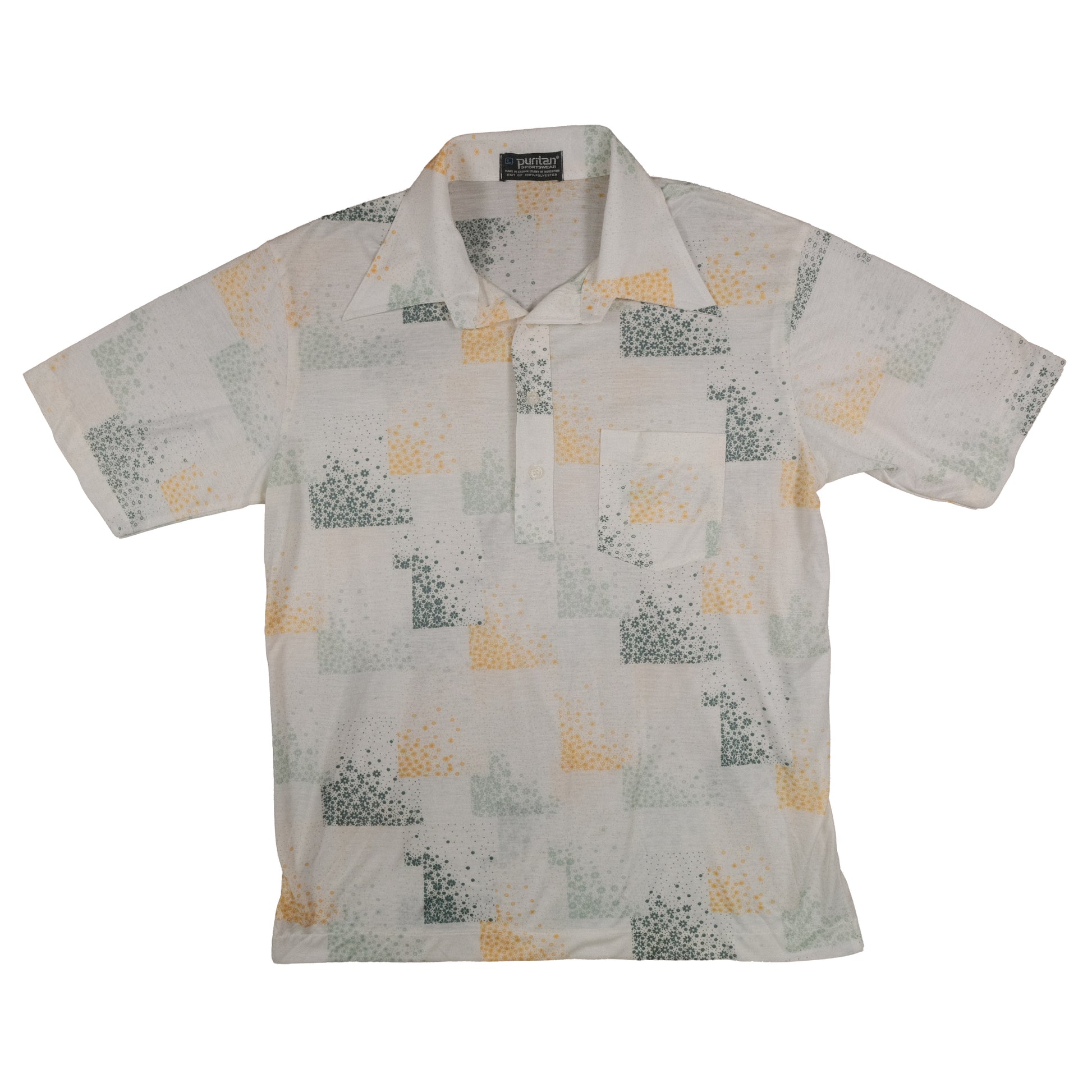 Vintage 70’s Puritan Polo Shirt Men’s Large Poly Knit Floral Pattern Retro Summer
