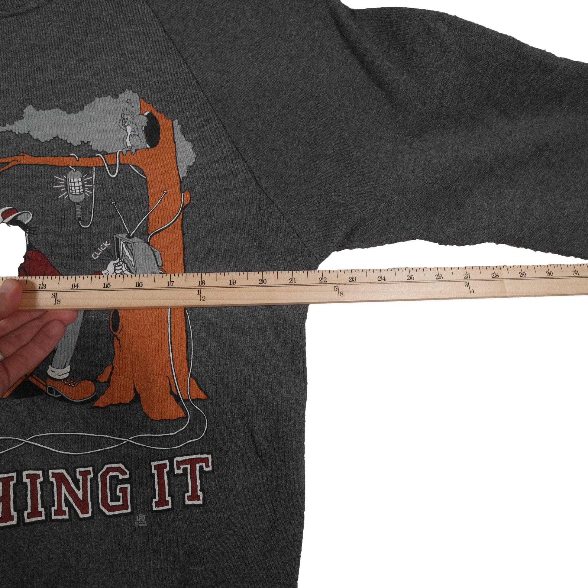 Tag says XL but fits more like a large. Each item is vintage and has signs of wear which may include discoloration, fading, pilling, or distressing. Please examine each photo carefully before purchasing. What you see is exactly what you will receive. Our goal is to give you the best experience possible, so please let us know if you have any questions. All items are measured by hand so please allow for slight variance.