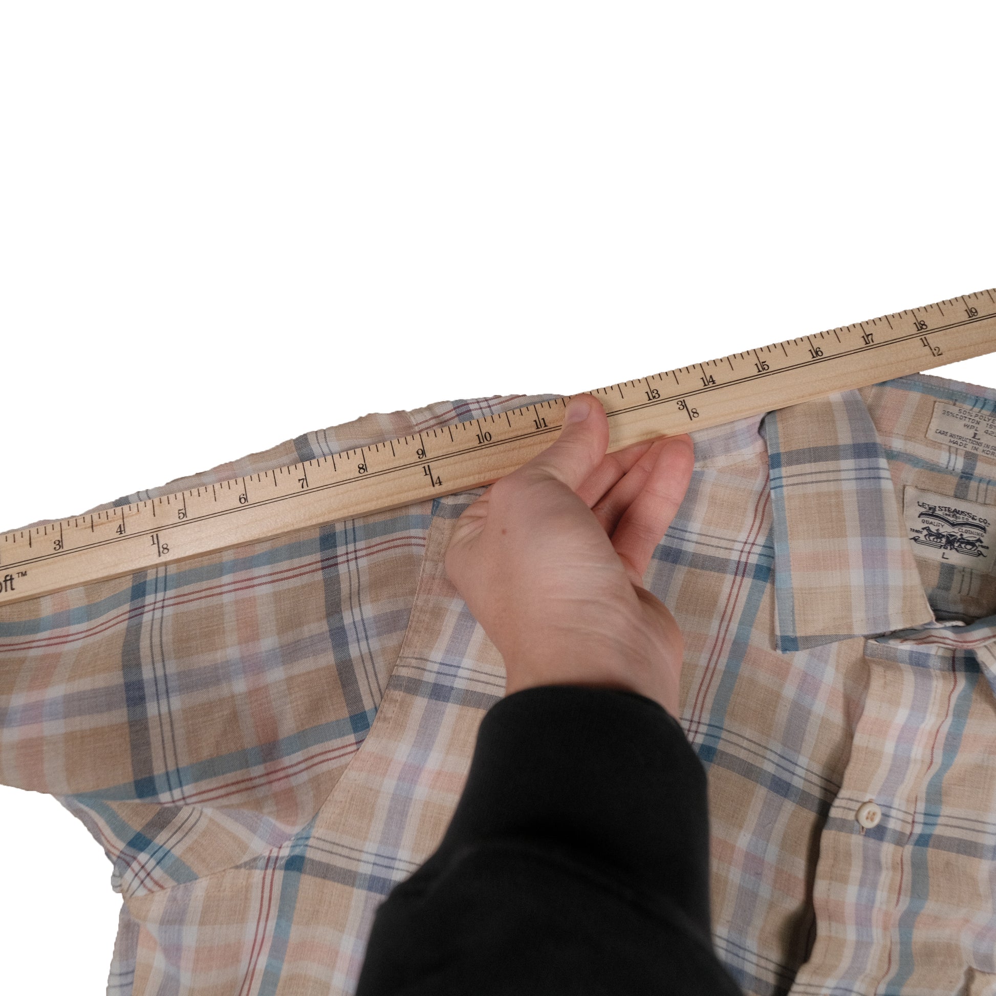 Length: Measure straight down the garment from the top seam where it meets the collar down to the bottom hem of the garment
