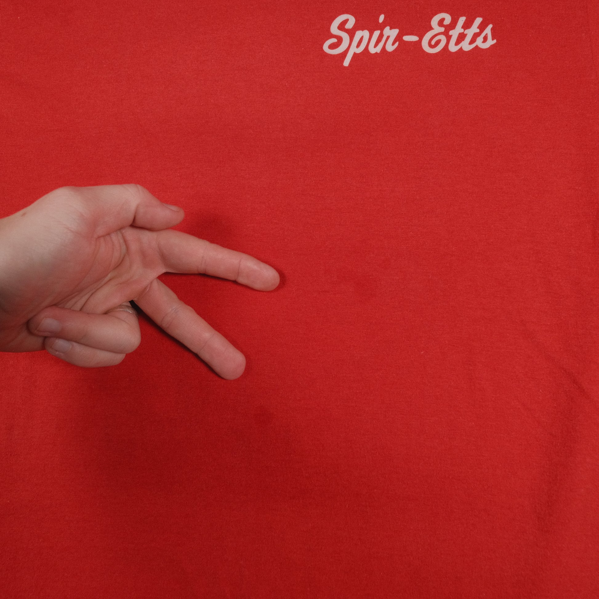 Vintage 80’s Screen Stars Puff Print Spir-Etts Red T-Shirt Adult Small Single Stitch