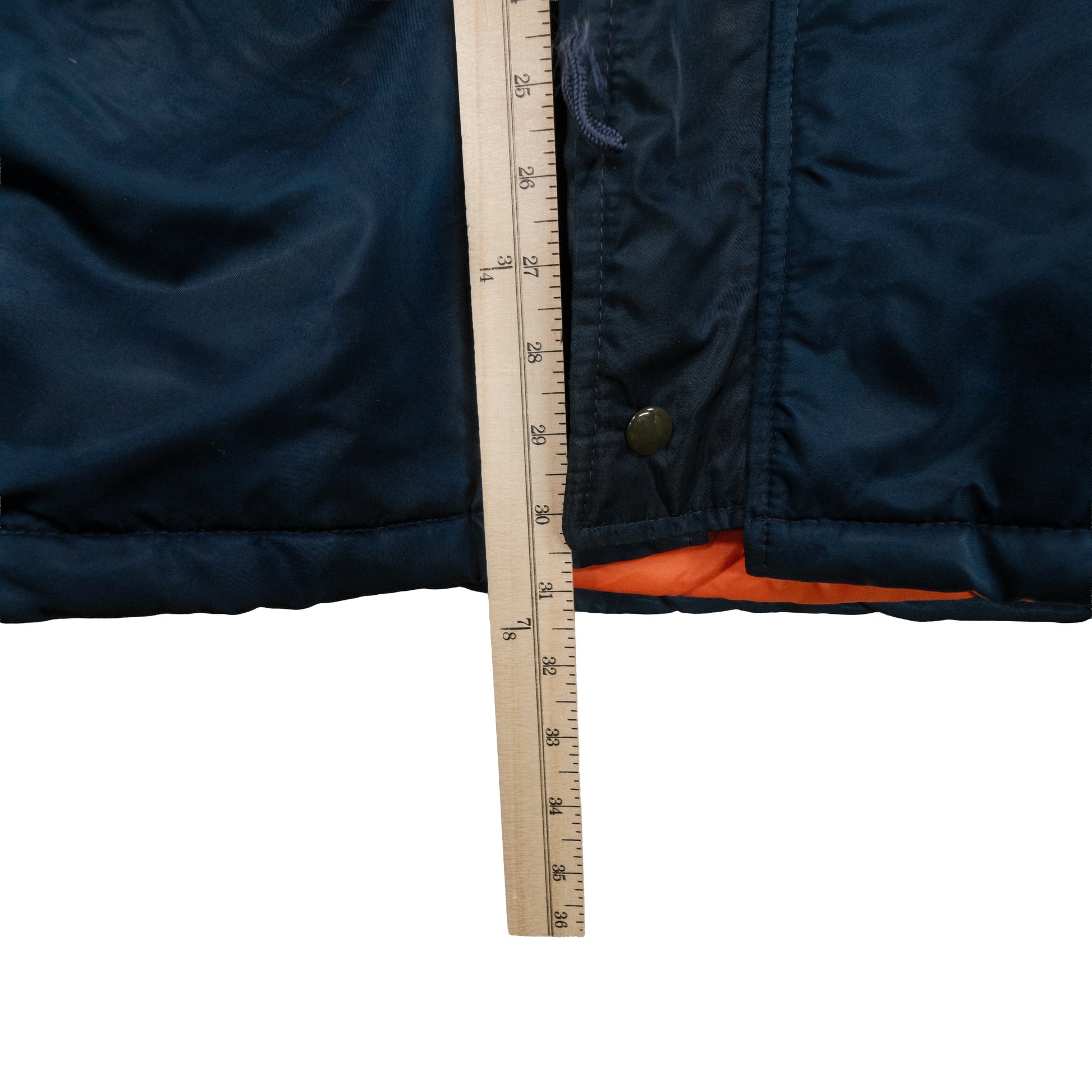 Small stain on interior lining and seam fraying in armpit as seen in photos. Each item is vintage and has signs of wear which may include discoloration, fading, pilling, or distressing. Please examine each photo carefully before purchasing. What you see is exactly what you will receive. Our goal is to give you the best experience possible, so please let us know if you have any questions. All items are measured by hand so please allow for slight variance.